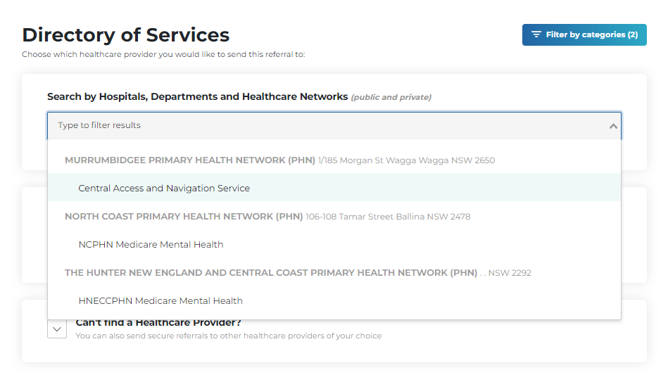 You can view how the PHN referral portals are set up here, linking to the Central Referral Hub for intake: